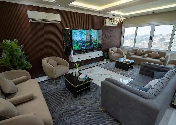 The apartment lies in the Mohandesin district, nearly a 10-minute drive from the Aisha Fahmy Palace. The city centre is just 5 km away and Cairo International airport is 25 km from Luxury Apt With Stunning View.